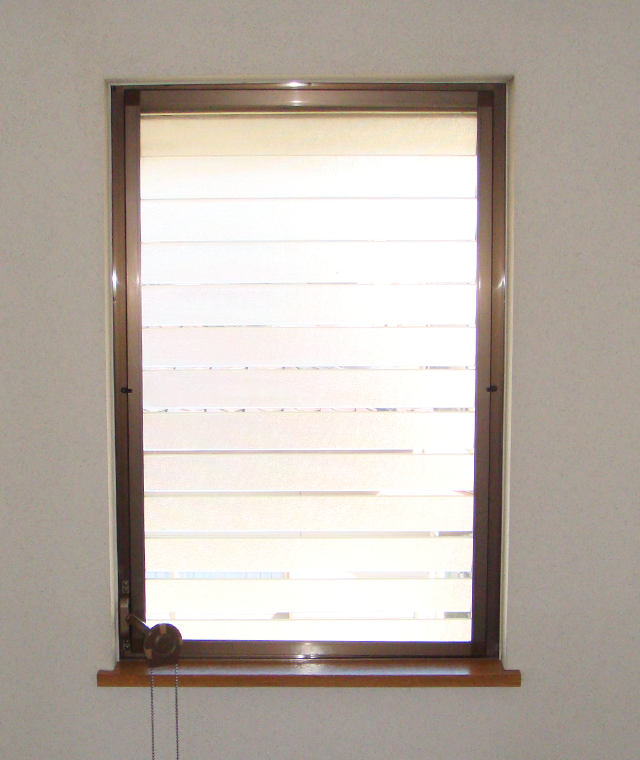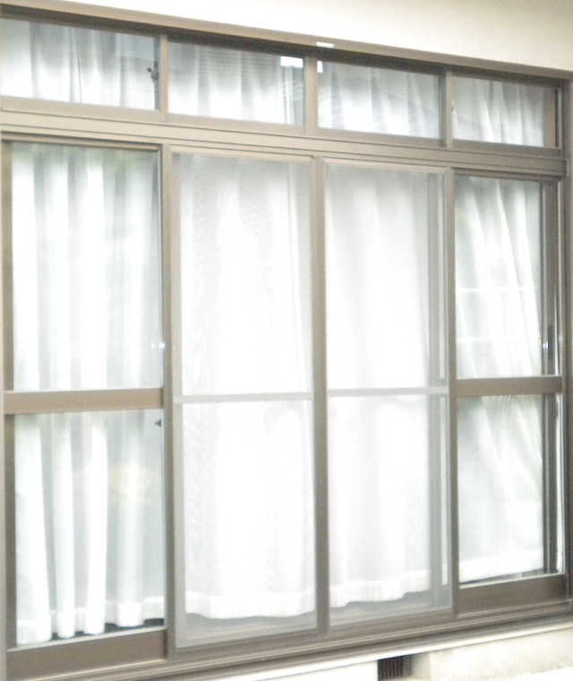 カバー工法・外壁や内装をいためず、ガラス部を撤去し、中に組込む施工です。築17年位の硝子ルーバーサッシで気密性が悪く風で砂ぼこりが入り困っている。カバー工法でFix窓にし、ガラスを透明にし、見通しが良く成り、風やほこりが入らなく成り明るくなりました。