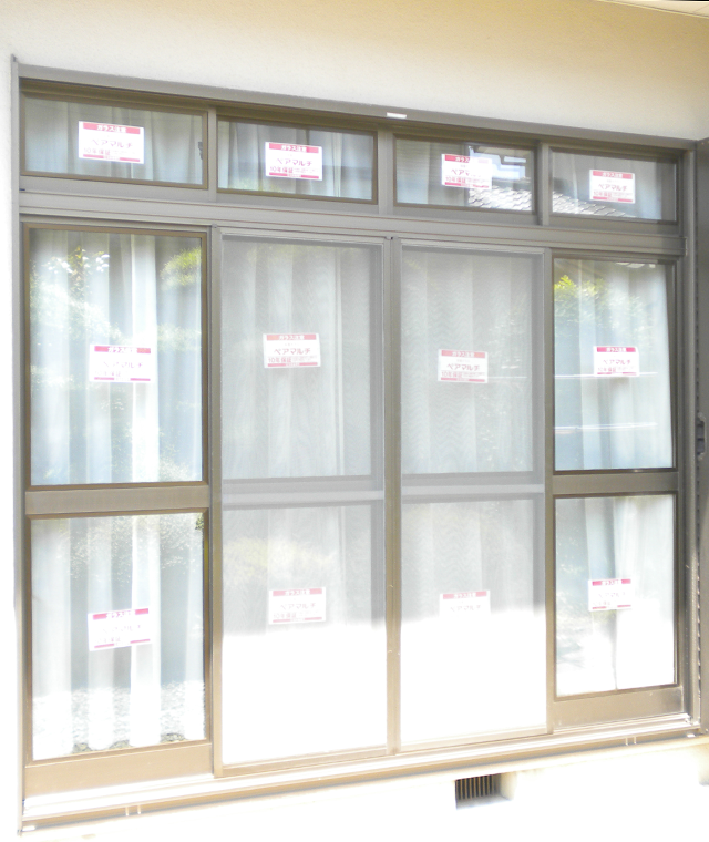 冬場の硝子に結露がひどく困っている。硝子をペア硝子にし、結露するのを緩和しました。
